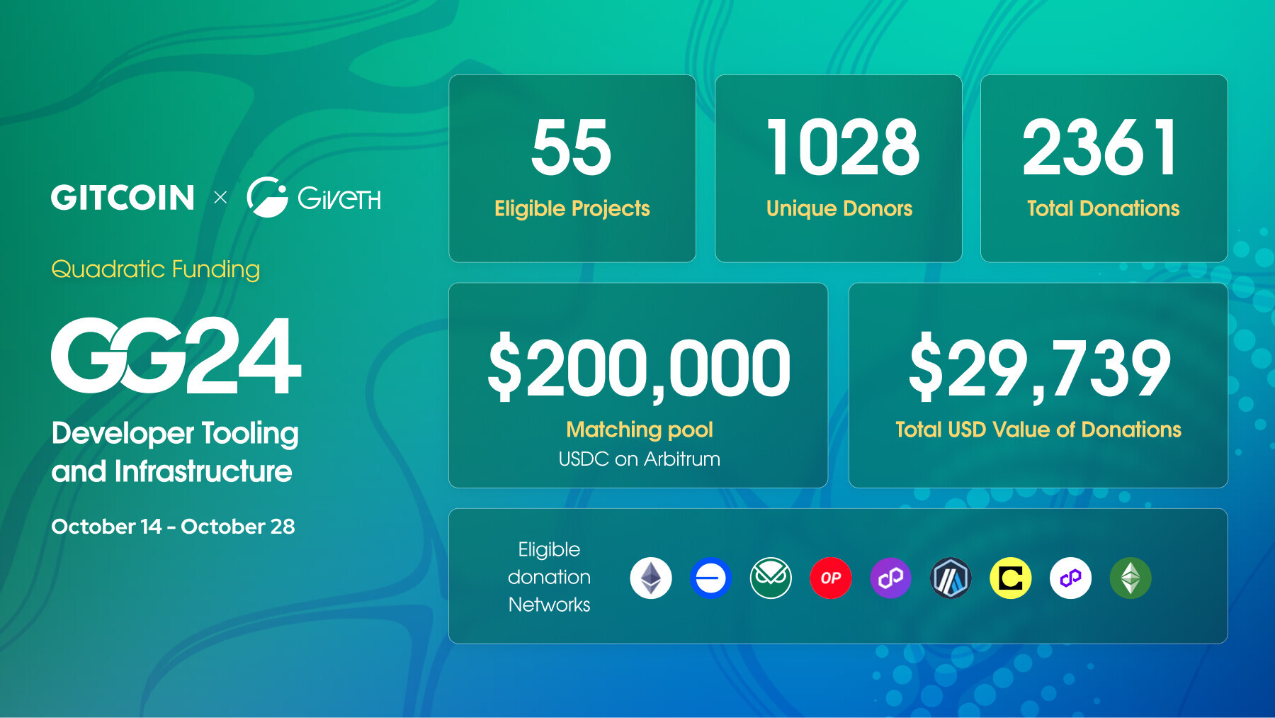 Giveth and Gitcoin partnered for GG24, with Giveth acting as the QF provider for the Developer Tooling & Infrastructure and Interop Standards, Infra & Analytics domains.