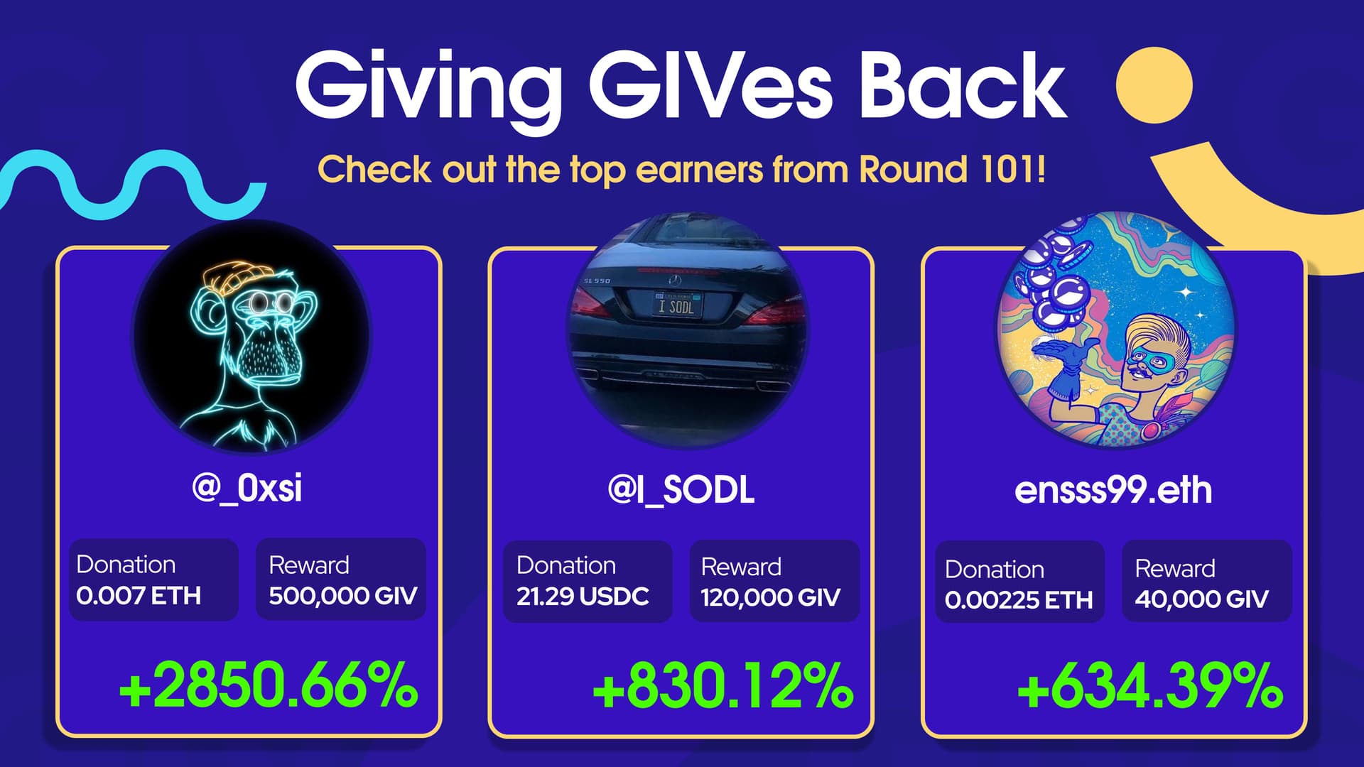 Winners’ GIVbacks are queued and will be live in their GIVstreams soon. We will send you an email and notify you here once your winnings are claimable. Be sure to add your email address to your profile so you can receive the good news.