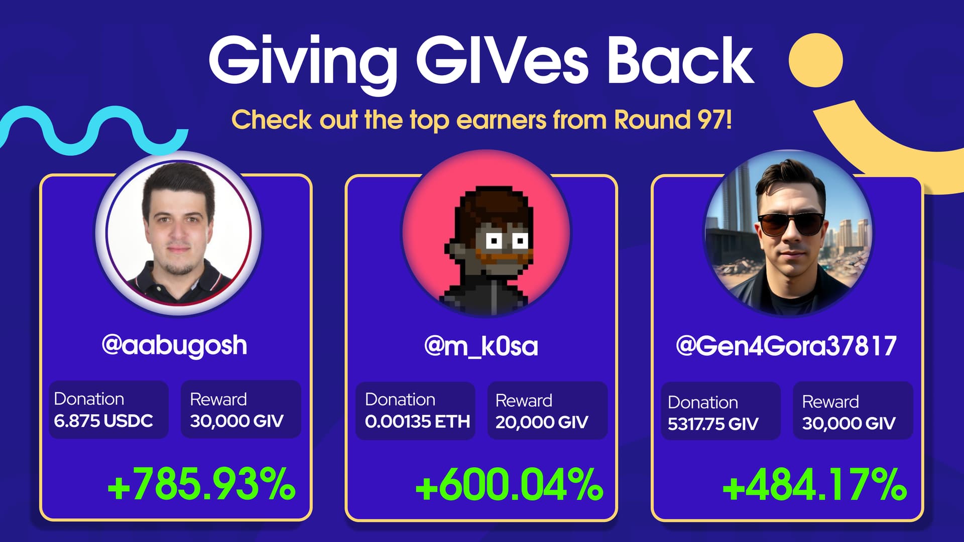 Winners’ GIVbacks are queued and will be live in their GIVstreams soon. We will send you an email and notify you here once your winnings are claimable. Be sure to add your email address to your profile so you can receive the good news.